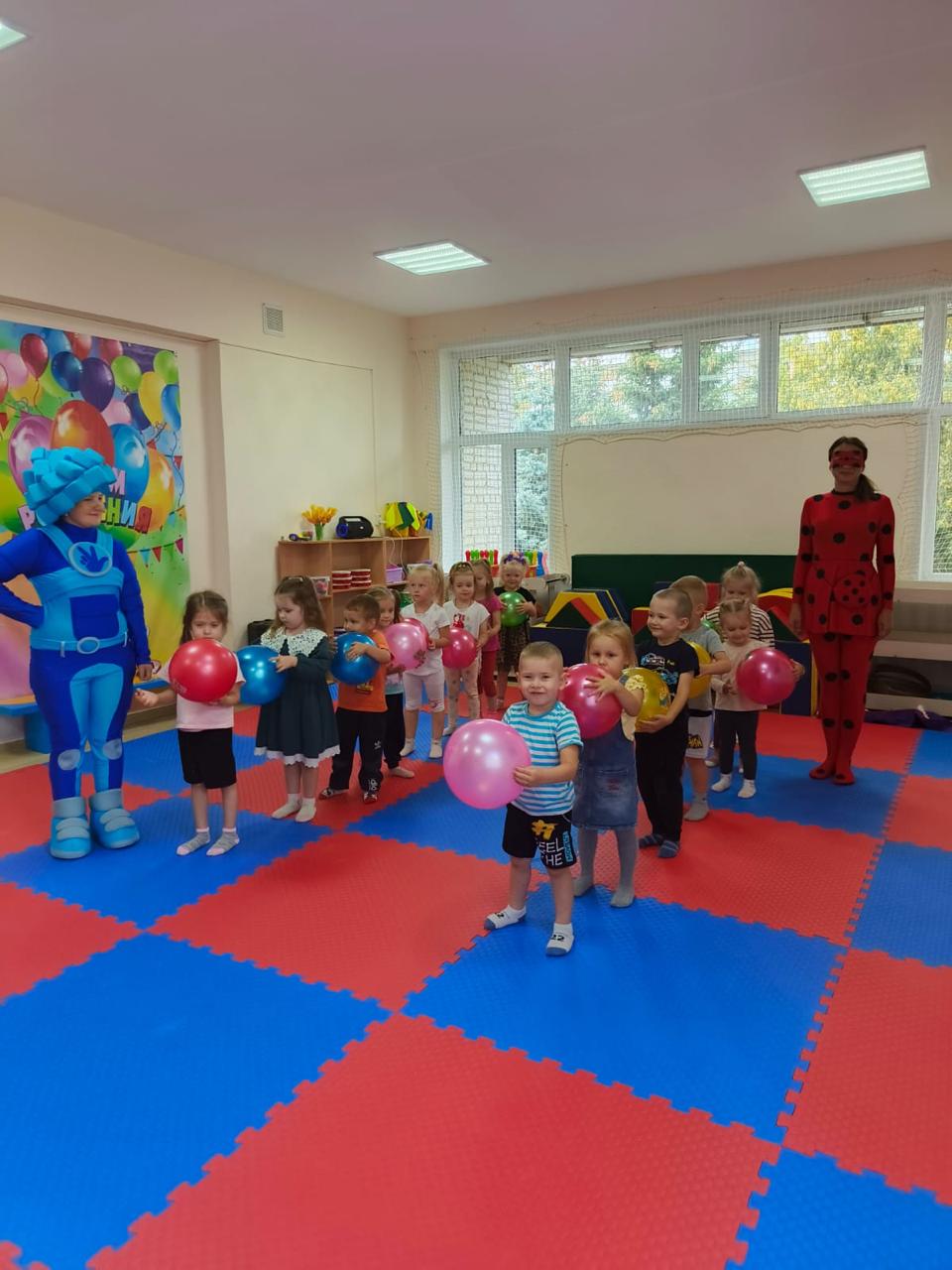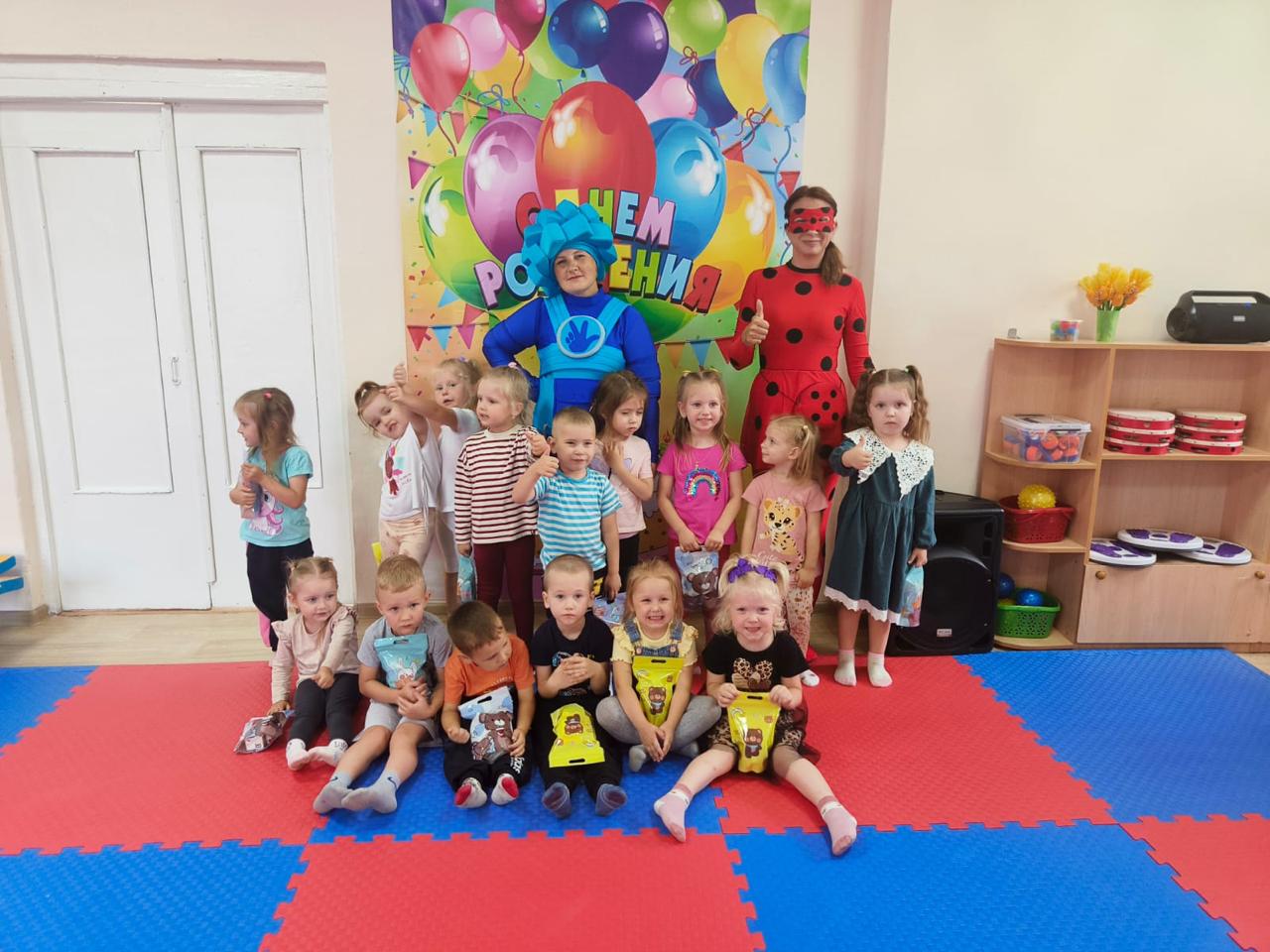 В нашем зале царит атмосфера шумного веселья, ведь день рождения — это самый любимый и долгожданный праздник. К ребятам пришли необычные гости – веселый Фиксик и гламурная Леди Баг. Они играли с детьми в различные игры, танцевали, загадывали загадки. Не обошлось и без традиционного хоровода «Каравай» и всеми любимой песни «Пусть бегут неуклюже». День Рождения – это самый любимый и долгожданный праздник. Так пусть эти чудесные мгновения останутся надолго в памяти каждого ребенка!