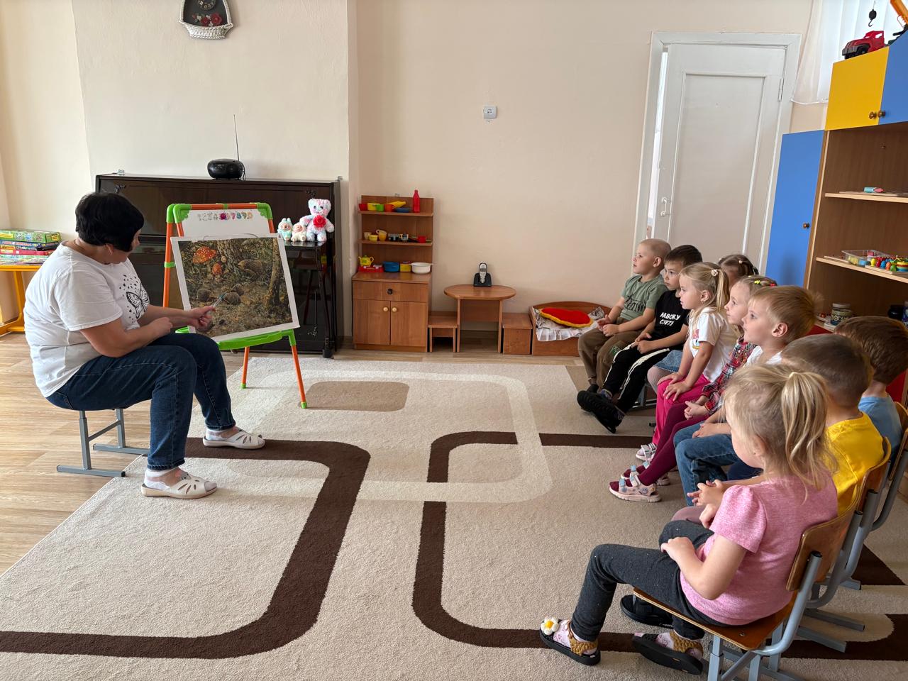 Сегодняшнее утро в средних группах было просто волшебным! Ребята отправились в настоящее путешествие в мир осеннего леса!Сначала дети внимательно рассматривали картину «Семейство ежей в лесу». Обсудили, какие чувства вызывает эта картина, и почему осенью так много красок в природе. После пальчиковой гимнастики ребята приступили к созданию оригинальной аппликации «Ёжик». Используя кусочки цветной бумаги и клей, малыши воплощали свои идеи и фантазировали, придумывая образ лесного обитателя. Но на этом приключения не закончились! Ребята отправились в осенний лес в гости к любимому Ежику. И, конечно же, их встреча была наполнена радостью: они пели для него веселые песенки, играли в подвижные игры и даже устроили настоящий осенний танец! Море положительных эмоций и новых впечатлений получили малыши в это осеннее утро!