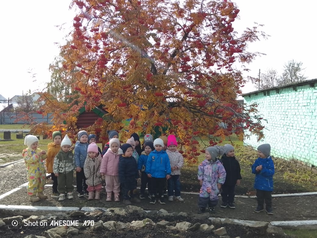 После занятия ребята отправились на прогулку полюбоваться осенним пейзажем. Золотые листья, шуршащие под ногами, яркое солнце и свежий воздух - осенняя природа подарила малышам массу положительных эмоций