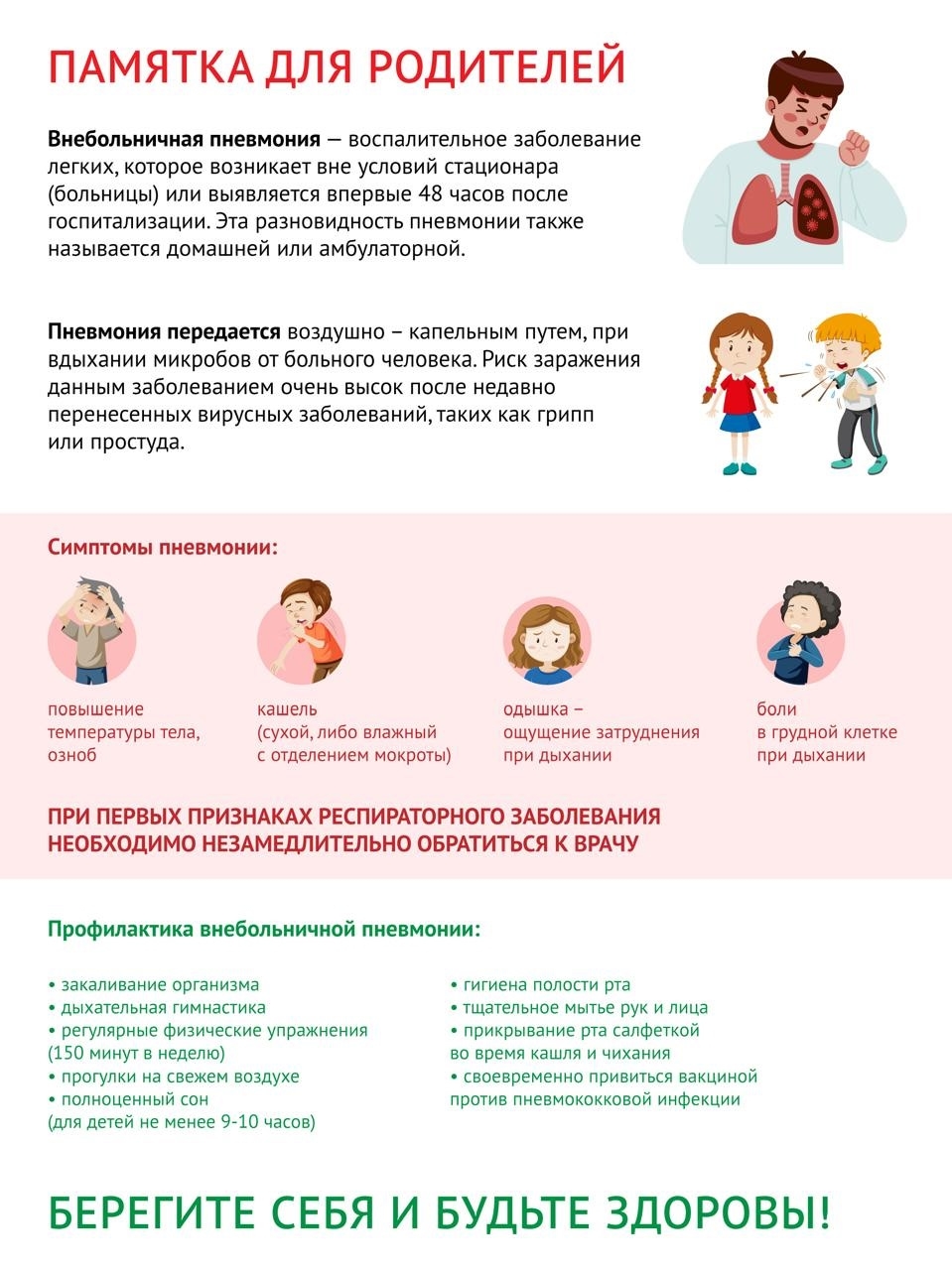 Уважаемые родители, внимание! Предлагаем вам памятку "Внебольничная пневмония. Симптомы и профилактика".