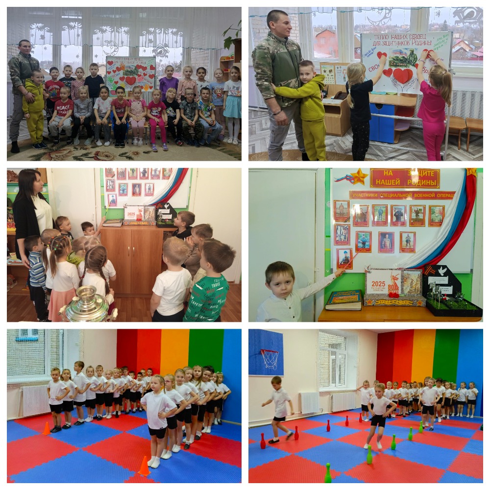 В нашем детском саду прошли мероприятия, посвященные Дню Героев Отечества. Мы рассказали детям о празднике, провели спортивные игры, развивая их ловкость и командный дух. Музей нашего детского сада сегодня стал местом особенного притяжения. Ребята с трепетом рассматривали стенд «На защите нашей Родины», где находятся фотографии пап наших воспитанников – тех, кто сейчас выполняет свой долг в зоне специальной военной операции. Особую радость вызвала встреча с участником СВО, Вячеславом Юрьевичем Васиным. Для детей это была уникальная возможность услышать рассказ о службе, увидеть настоящего защитника Отечества и задать волнующие вопросы. Мы уверены, что такие встречи оставляют глубокий след в сердцах ребят и формируют правильные ценности.