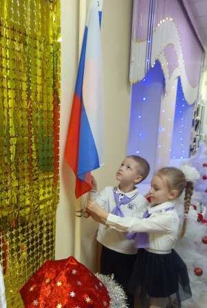 29 декабря честь поднятия Государственного флага Российской Федерации предоставилась воспитанникам нашего детского сада Мясиной Анастасии и Орлову Тимофею. На торжественной церемонии грамоты получили ребята, победившие в региональном конкурсе «Быть хозяином на Земле» и районном конкурсе поделок новогодних игрушек «Музей Деда Мороза».