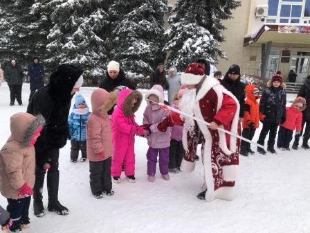 3 января дети нашего детского сада снова смогли окунуться в праздничную атмосферу и принять участие в новогоднем представлении на городской площади. Ребята были приятно удивлены встречами со сказочными героями: Дедом Морозом, Снегурочкой и Бабой Ягой. Дети водили хороводы, танцевали, принимались участие в играх. Восторженные эмоции переполняли всех присутствующих: и детей, и взрослых.